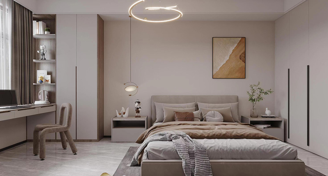 巴黎名城115㎡三室兩廳臥室現(xiàn)代簡(jiǎn)約風(fēng)格裝修案例效果圖