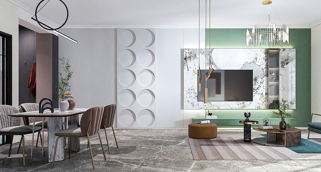東岸世家110㎡三室兩廳客餐廳現(xiàn)代簡約風(fēng)格裝修案例效果圖