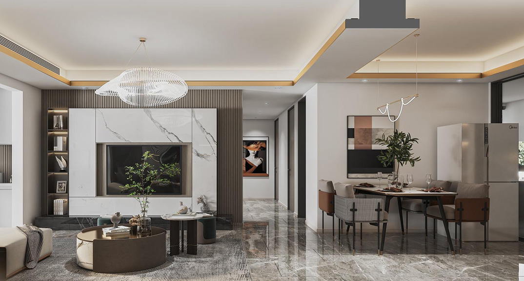 盛世華府138㎡四室兩廳客餐廳電視現代風格裝修案例效果圖