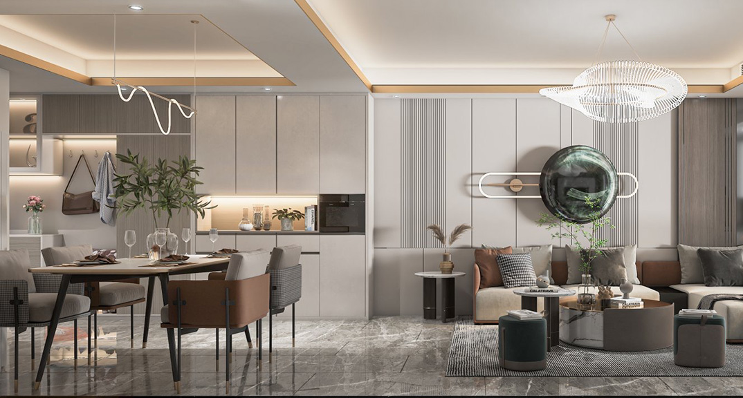 盛世華府138㎡四室兩廳客餐廳沙發(fā)現代風格裝修案例效果圖