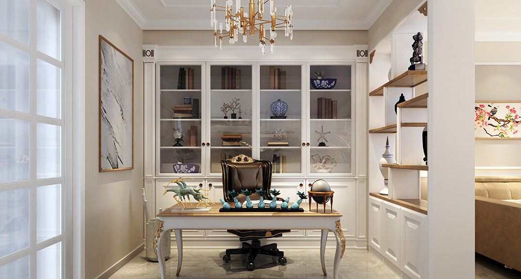 壹號學府135㎡三室兩廳書房美式風格裝修案例效果圖