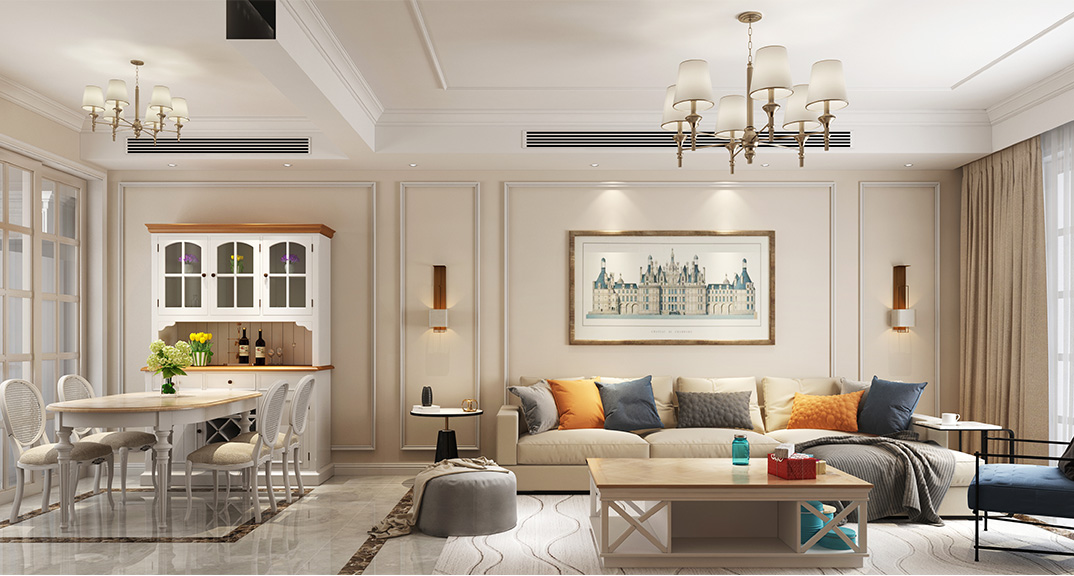 壹號學府135㎡三室兩廳客餐廳美式風格裝修案例效果圖