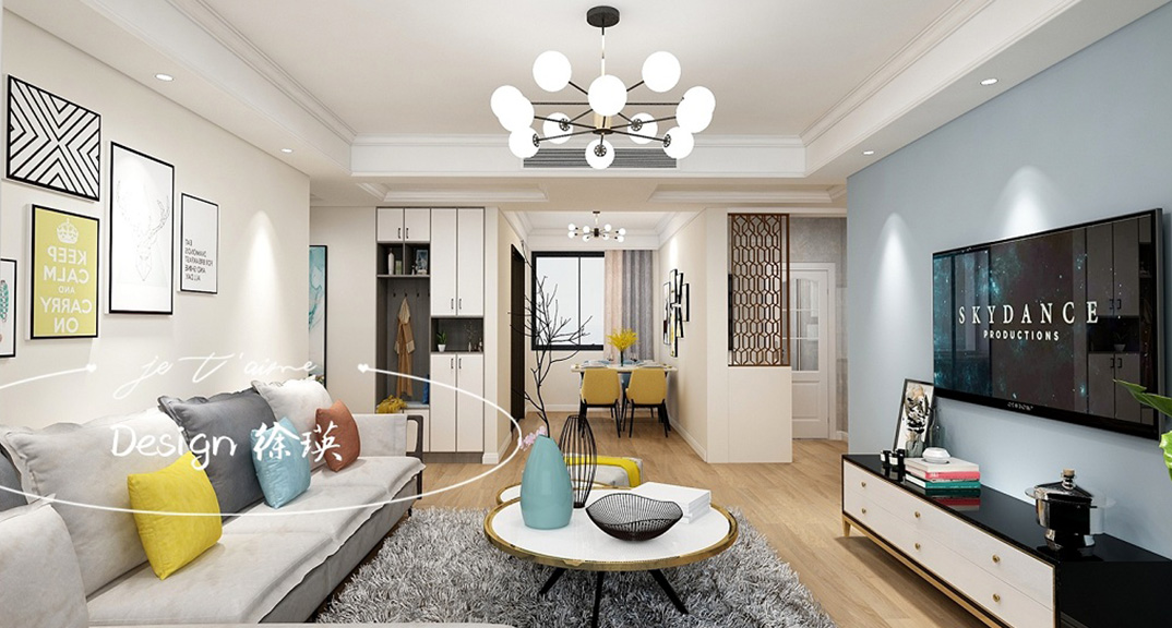 金鳳凰銘品114㎡三室兩廳客廳現(xiàn)代風(fēng)格裝修案例效果圖