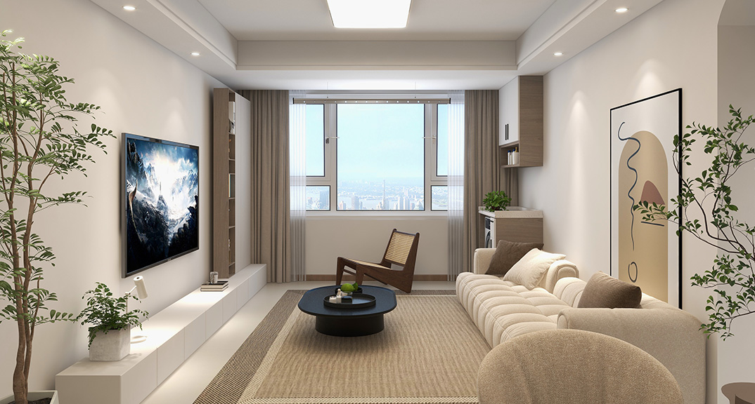 都市逸品95㎡兩室兩廳客廳現(xiàn)代風(fēng)格裝修案例效果圖