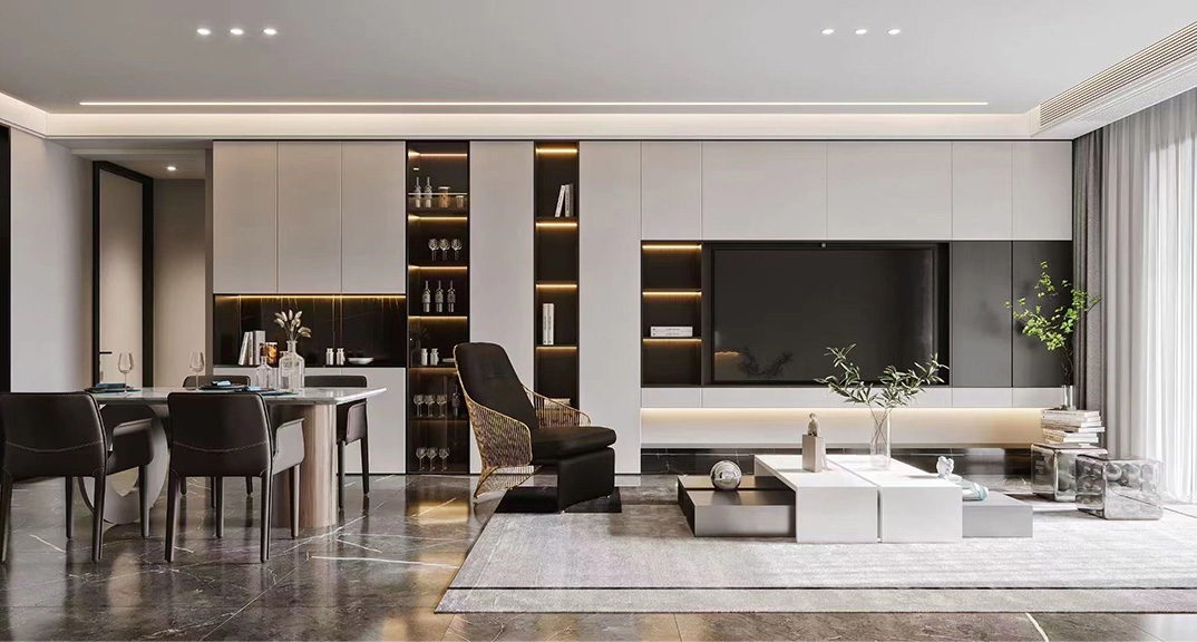 本案設(shè)計(jì)風(fēng)格為現(xiàn)代簡(jiǎn)約風(fēng)格,首先從拾掇空間開始,充分解析原空間的優(yōu)缺點(diǎn),打散原有空間布局,重新組合構(gòu)建,盡可能的讓公共空間敞開通透。在設(shè)計(jì)中,結(jié)合業(yè)主的想法,以生活的溫度為線索,通過多種材質(zhì)的配比,去呈現(xiàn)空間的溫情與關(guān)懷