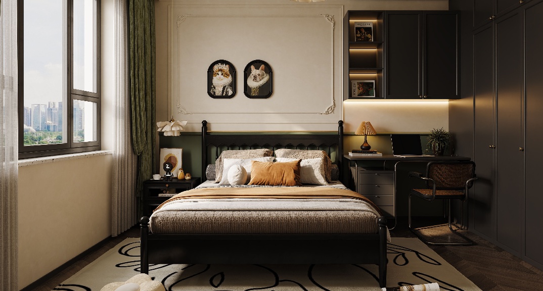 客戶需要書(shū)房,考慮到客廳的尺寸,決定在沙發(fā)上后側(cè)作為獨(dú)立的讀書(shū)區(qū),既能中和沙發(fā)和電視之間的距離,也可以增加空間的趣味性,用玻璃間隔做到了隱私性和透光性同時(shí)兼顧。