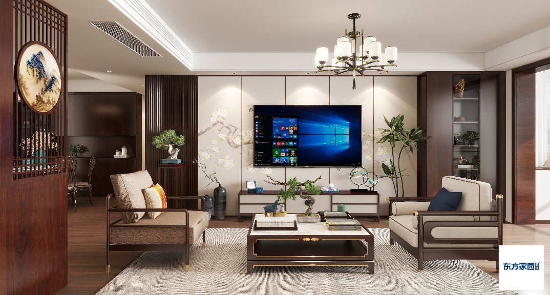 裝修效果圖-山?;▓@137平米-新中式效果圖