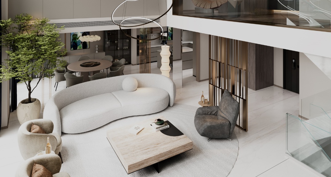 這座五層別墅專為三口之家打造,整體設計以現(xiàn)代輕奢風格為主。一層為挑空的客廳、餐廳和廚房,營造出舒適的社交空間。二、三層為臥室,注重舒適性與私密性,打造溫馨的居住環(huán)境。負一、二層設休閑娛樂區(qū)、空間足夠大的衣帽間,滿足家庭成員的多樣化需求。一層帶有贈送庭院,可盡情享受戶外美景。在材質選擇上,運用高品質的石材、木材和金屬,彰顯質感與品味。色彩上,以中性色為基調,搭配局部的亮色點綴,營造出時尚而不失溫馨的氛圍。
