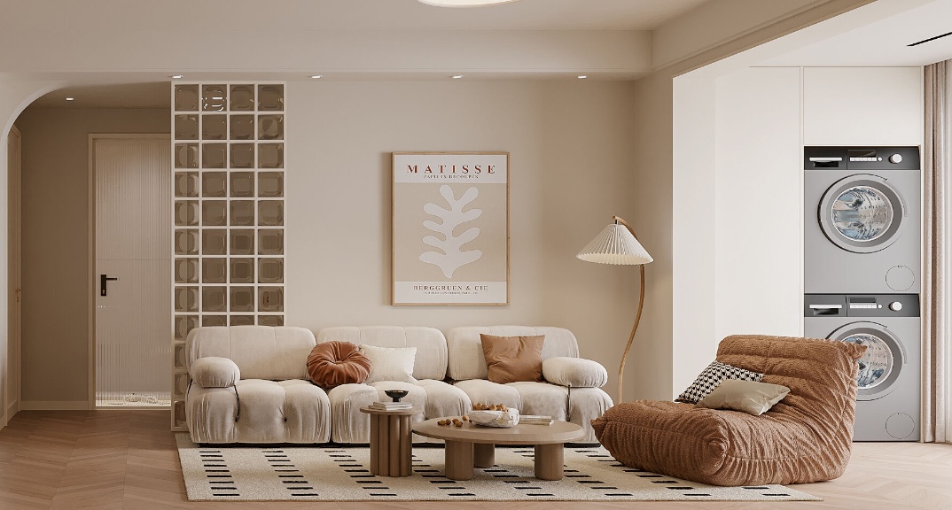 青島裝修效果圖-現(xiàn)代奶油風(fēng)-金地悅峰裝修