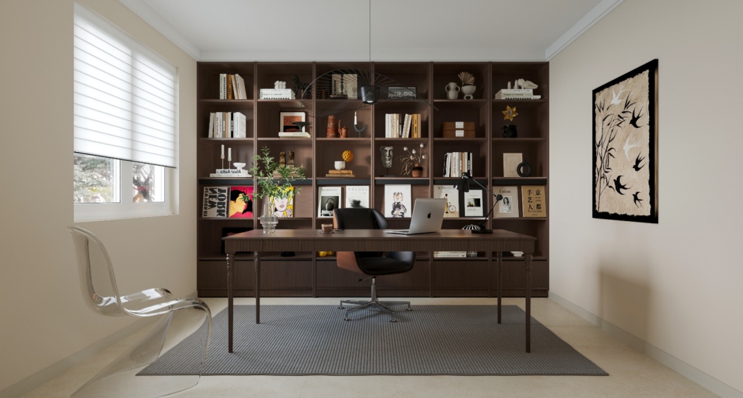 進門玄關(guān)設(shè)計鞋柜圍合空間,讓業(yè)主回家換衣變得更有儀式感,客廳采用開放式設(shè)計,連接餐廳和廚房,打造寬敞明亮的活動空間。整個空間選擇簡約大方的家具,營造出溫馨舒適的居家氛圍,更顯女主人浪漫細膩的性格。書房采用深色調(diào)家具點綴,男主人的私享空間,凸顯穩(wěn)重一家之主的氣質(zhì)。
