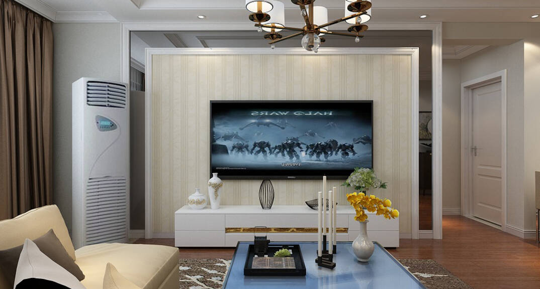 悅海地80m2二室二廳客廳電視墻簡約風(fēng)格裝修案例效果圖
