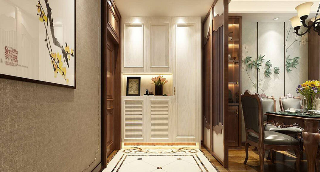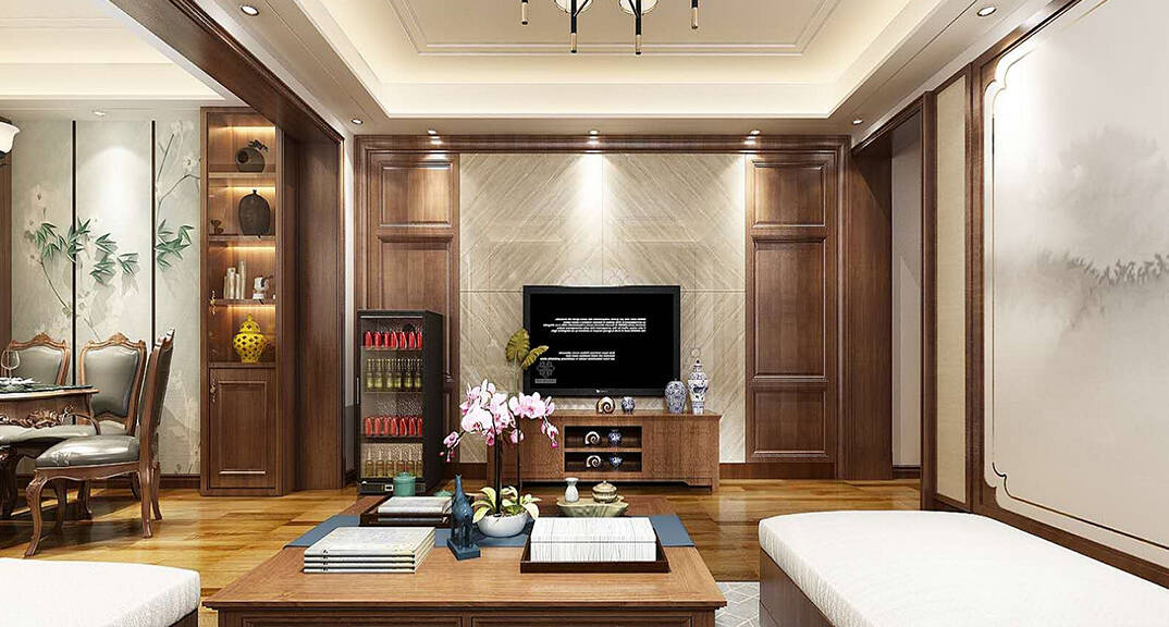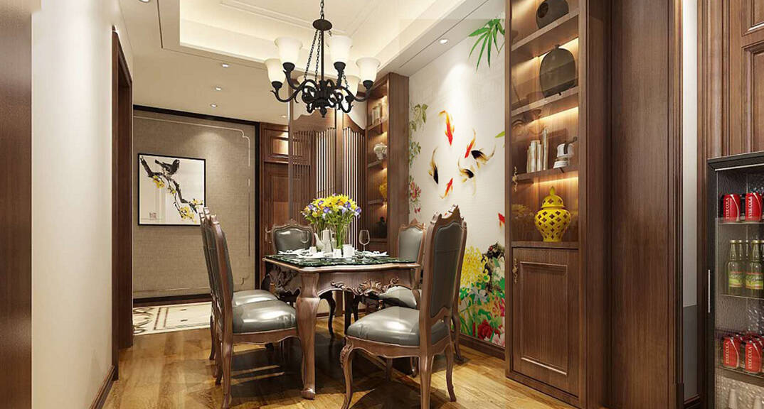 根據(jù)業(yè)主喜歡的木色搭配裝飾顏色和造型,打破中式沉悶黑暗的氛圍。運用中式元素和新材料相結合,整體賞心悅目。