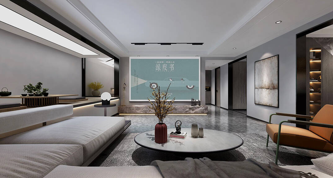 三盛國際海岸140㎡下疊客廳現(xiàn)代風格裝修案例效果圖