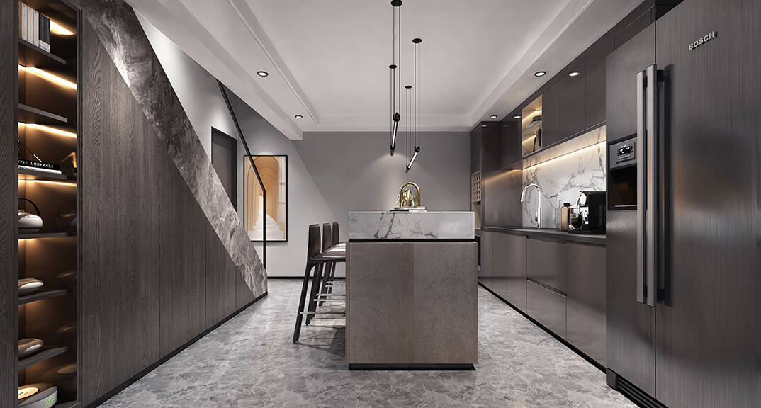 三盛國際海岸140㎡下疊餐廳現(xiàn)代風格裝修案例效果圖