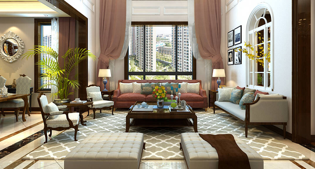 銀盛泰德郡260㎡別墅復(fù)式客廳新中式風(fēng)格裝修案例效果圖