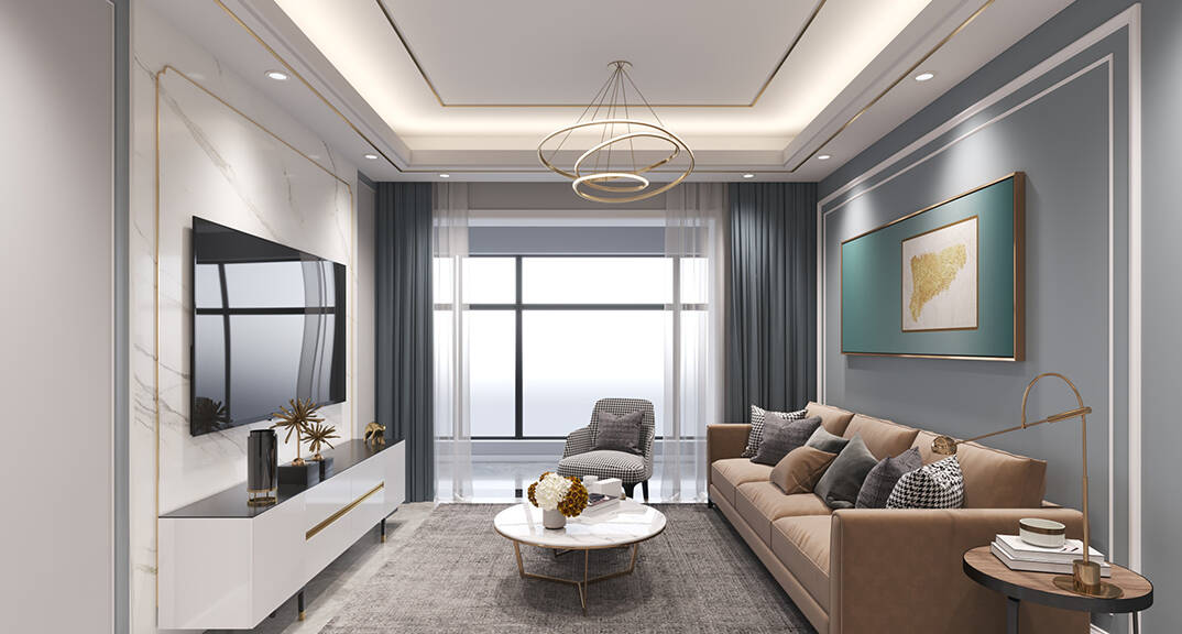 膠州機場公寓93㎡二室一廳客廳輕奢風格裝修案例效果圖