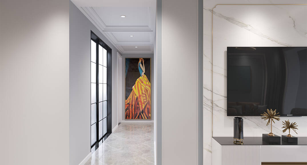 膠州機場公寓93㎡二室一廳過道走廊輕奢風格裝修案例效果圖