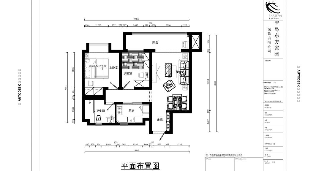 膠州機場公寓93㎡二室一廳客廳輕奢風格裝修戶型設計圖
