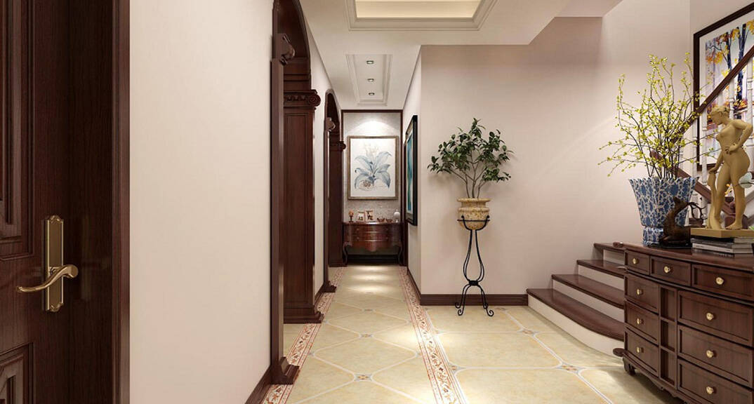 港中旅·海泉灣320㎡別墅玄關(guān)美式風(fēng)格裝修案例效果圖