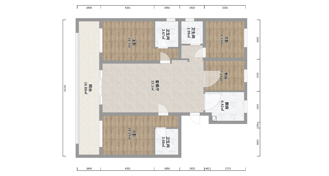 桃李芳菲4室2廳1廚2衛(wèi)132㎡戶型圖