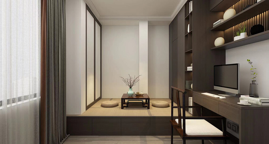 鑫江華府150㎡別墅上疊書房新中式風(fēng)格裝修案例效果圖
