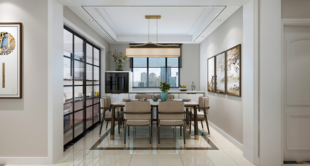 海信·紹興路66號(hào)130㎡三室二廳餐廳新中式風(fēng)格裝修案例效果圖
