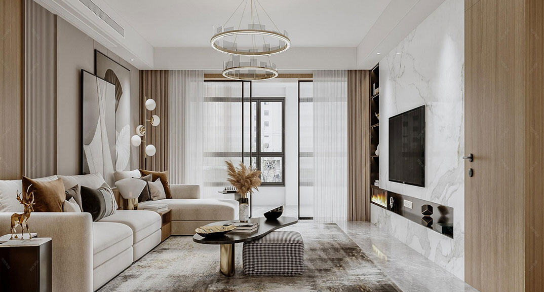 現(xiàn)代輕奢風格,注重高品質(zhì)與設(shè)計感,將優(yōu)雅時尚的質(zhì)感結(jié)合著現(xiàn)代材質(zhì)及裝飾技巧,從而巧妙的呈現(xiàn)在居室中,展示著精致高端的生活態(tài)度。它從來都不是單單靠一種細節(jié)或一種元素,它往往是多個細節(jié)元素組合而來,優(yōu)雅舒適簡約而有氣質(zhì)。黃銅和大理石是現(xiàn)在最熱門的輕奢元素,黃銅的高級質(zhì)感搭配大理石的溫潤內(nèi)斂,在視覺上可以形成一股極強的藝術(shù)張力,輕松打造一個時尚精致的現(xiàn)代家居環(huán)境。