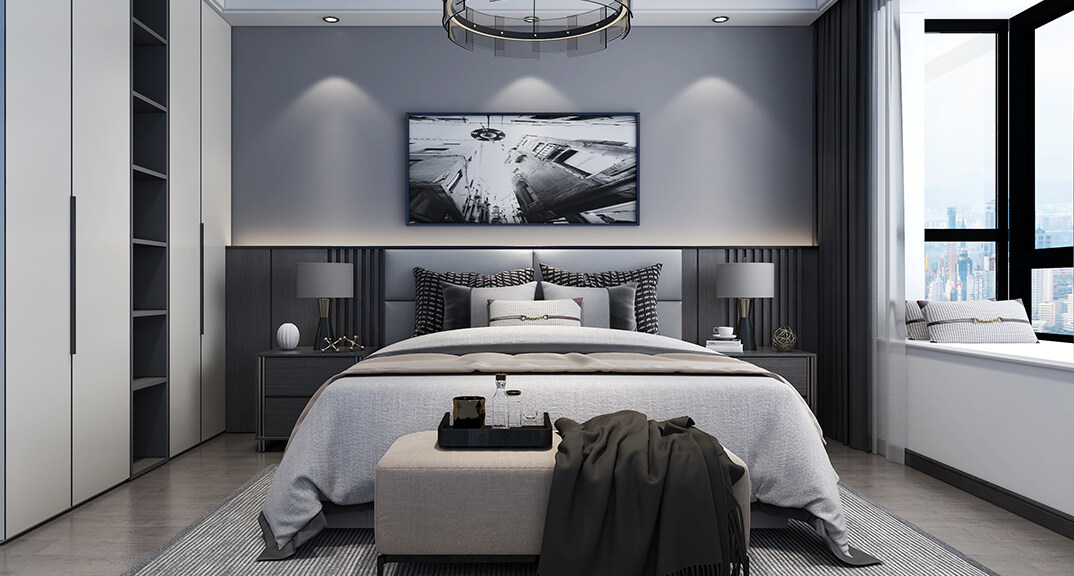 桂花園210㎡別墅復式主臥現(xiàn)代輕奢風格裝修案例效果圖