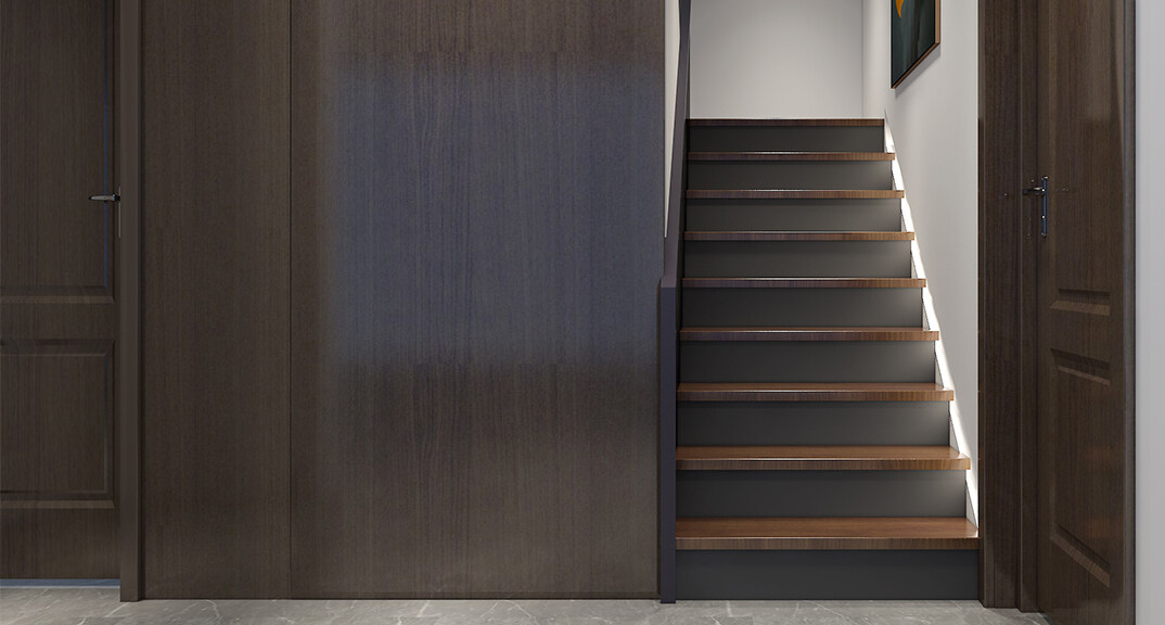 桂花園210㎡別墅復式樓梯間現(xiàn)代輕奢風格裝修案例效果圖