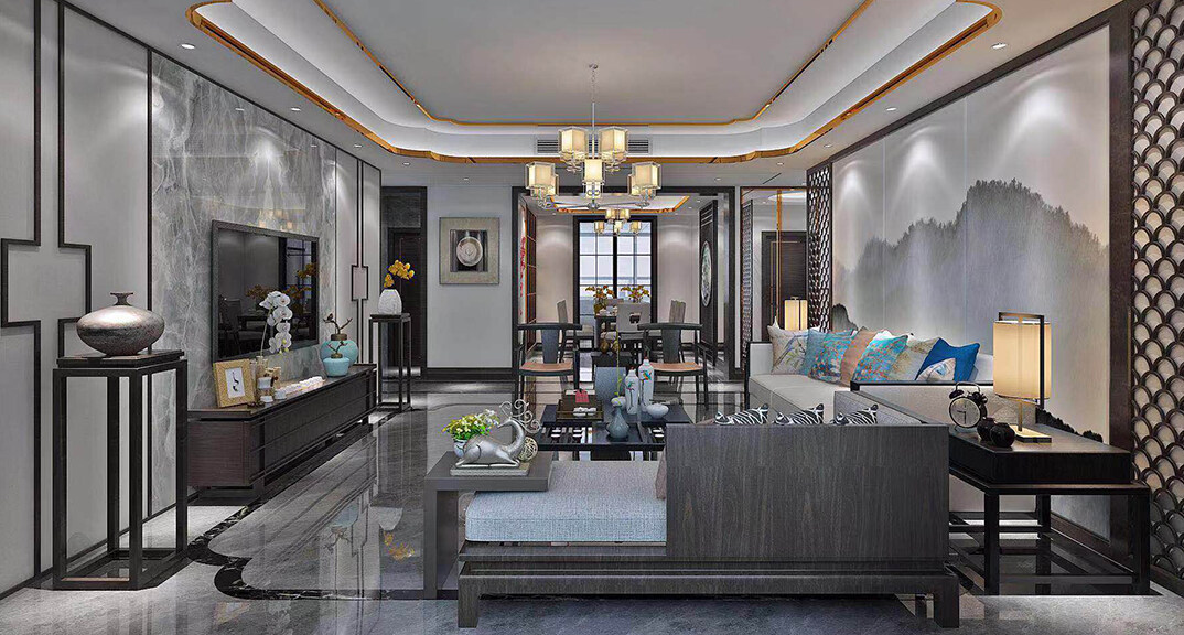 市直三區(qū)150㎡三室兩廳客廳新中式風(fēng)格裝修案例效果圖