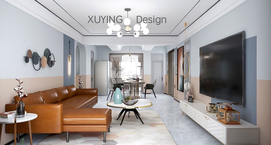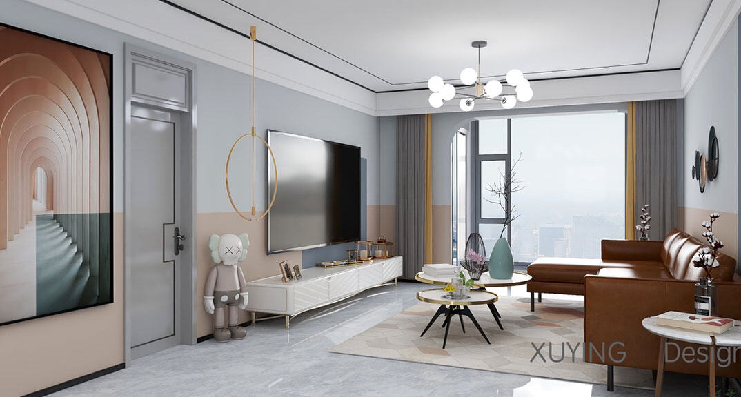 海棠映月150㎡四室兩廳客廳現代輕奢風格裝修案例效果圖