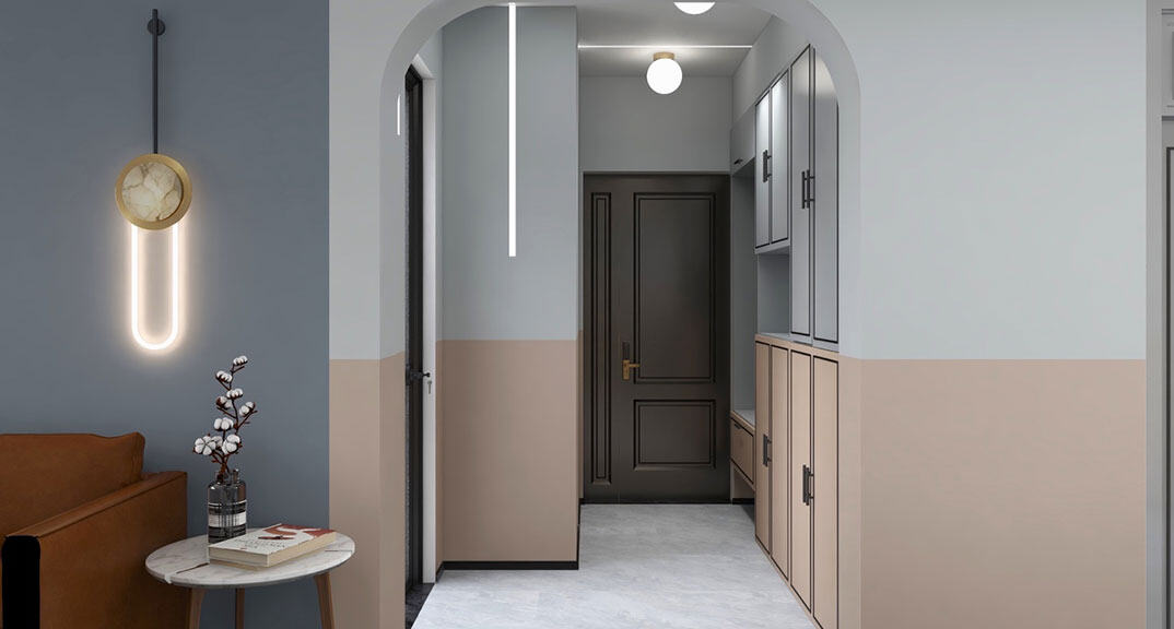 海棠映月150㎡四室兩廳入戶玄關走廊現代輕奢風格裝修案例效果圖