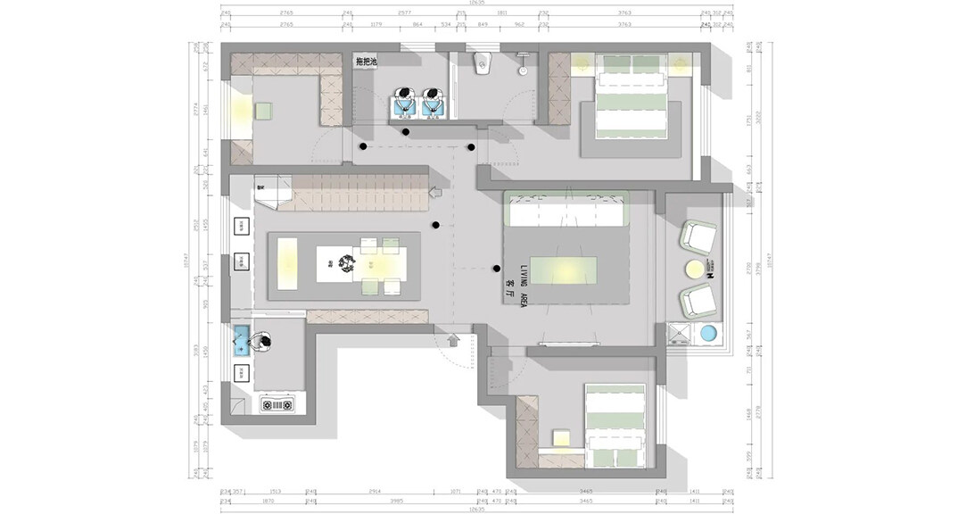 安泰未來城140㎡三室兩廳現(xiàn)代簡約風格裝修案例效果圖