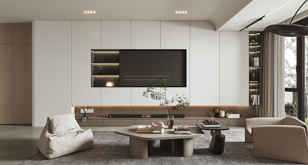 愛情芳華里165㎡四室兩廳客廳電視現(xiàn)代輕奢風(fēng)格裝修案例效果圖