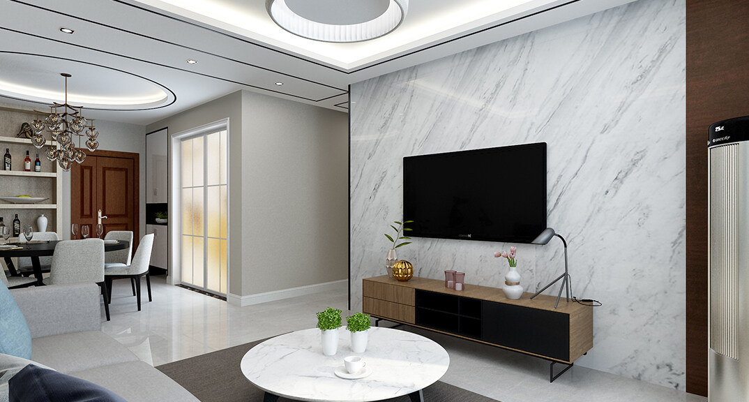 安泰德園128㎡三室兩廳客廳現(xiàn)代簡約風格裝修案例效果圖