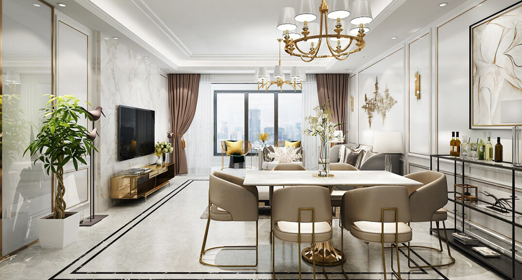 和達璟城128㎡洋房別墅客廳輕奢風(fēng)格裝修案例效果圖
