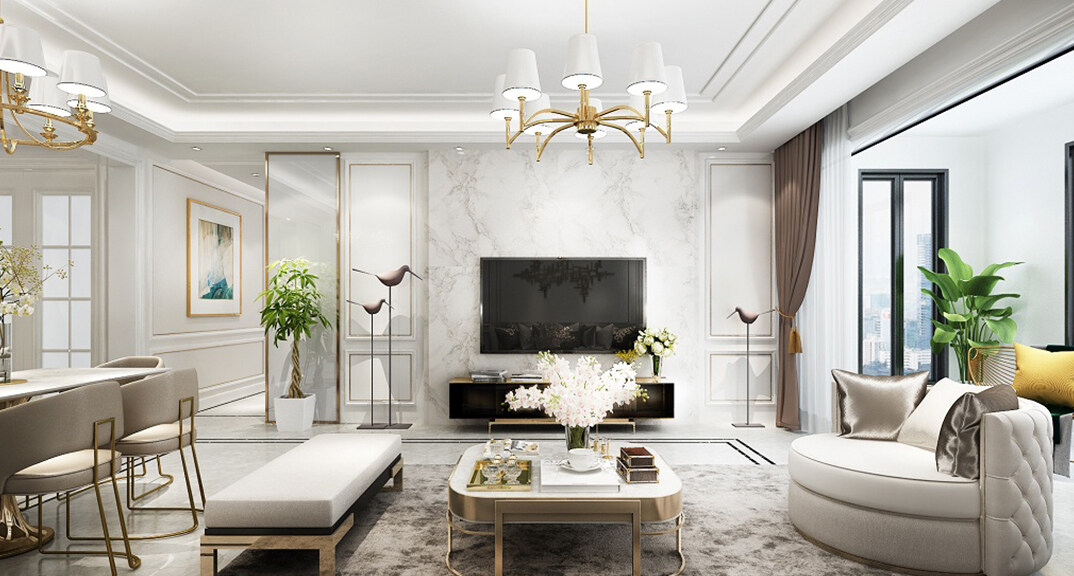 和達璟城128㎡洋房別墅客廳電視輕奢風(fēng)格裝修案例效果圖