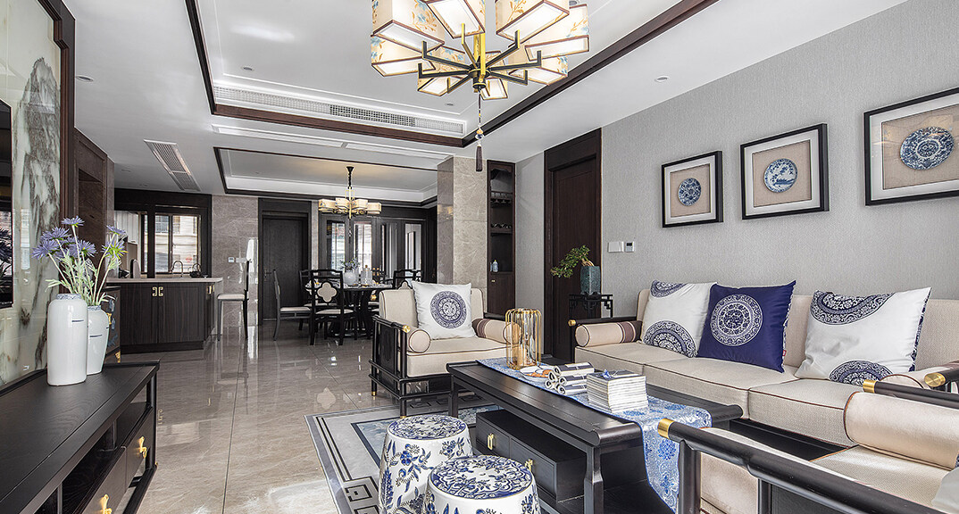 青特星城142㎡三室兩廳客餐廳新中式風(fēng)格裝修案例效果圖
