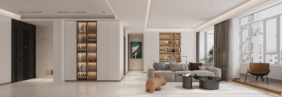東岸世家167㎡三室兩廳茶室現(xiàn)代極簡風格裝修案例效果圖