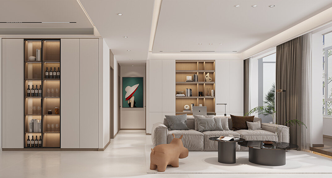 東岸世家167㎡三室兩廳客廳現(xiàn)代極簡風格裝修案例效果圖