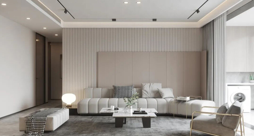 華僑府邸180㎡三室兩廳客廳沙發(fā)現(xiàn)代輕奢風格裝修案例效果圖