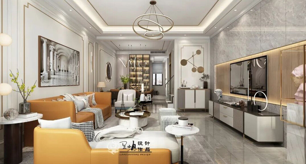 原筑300㎡別墅客廳現(xiàn)代輕奢風格裝修案例效果圖