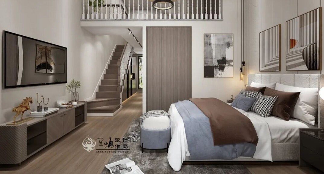 原筑300㎡別墅次臥現(xiàn)代輕奢風格裝修案例效果圖