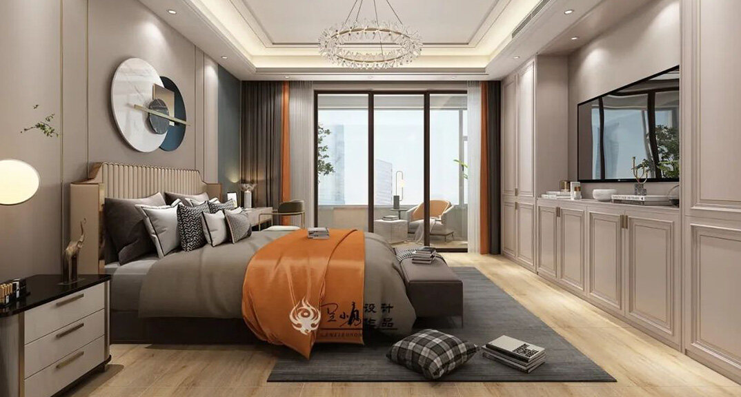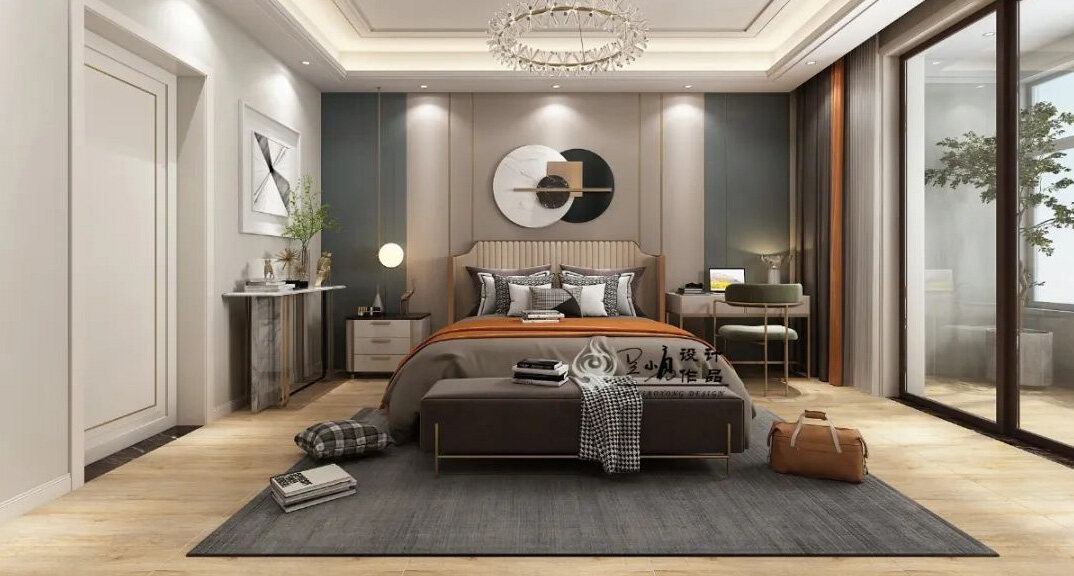 原筑300㎡別墅主臥現(xiàn)代輕奢風格裝修案例效果圖