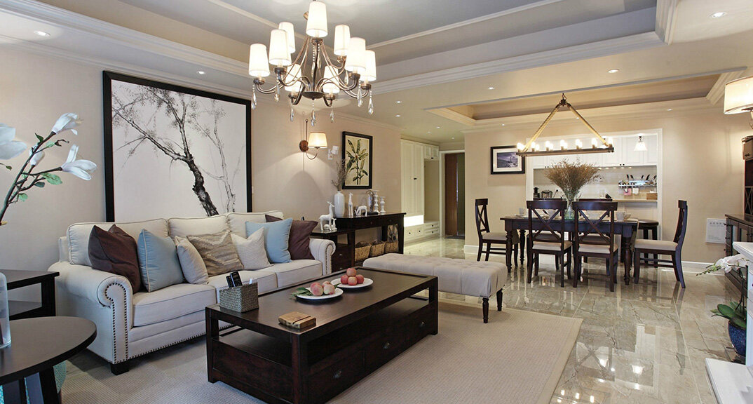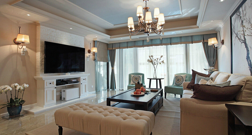 檀府300㎡別墅客廳現(xiàn)代美式風(fēng)格裝修案例效果圖