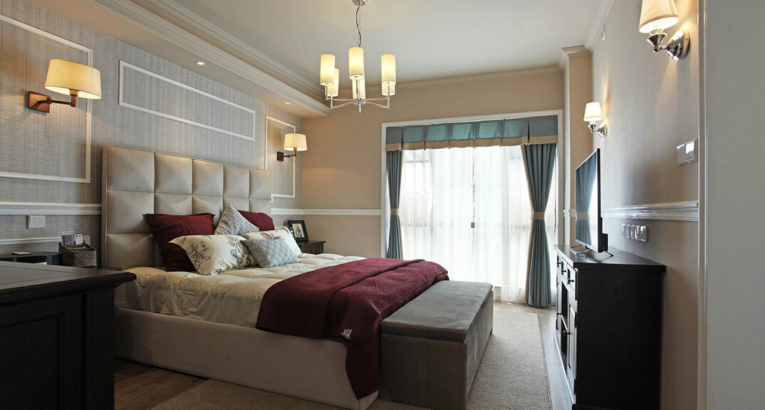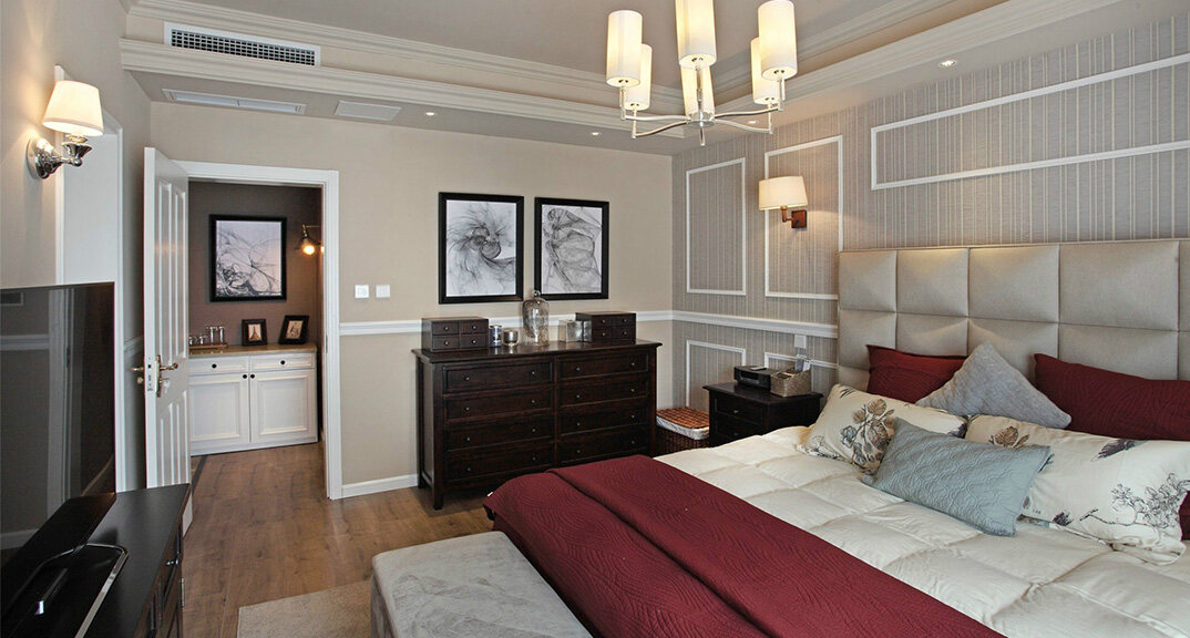 檀府300㎡別墅主臥現(xiàn)代美式風(fēng)格裝修案例效果圖