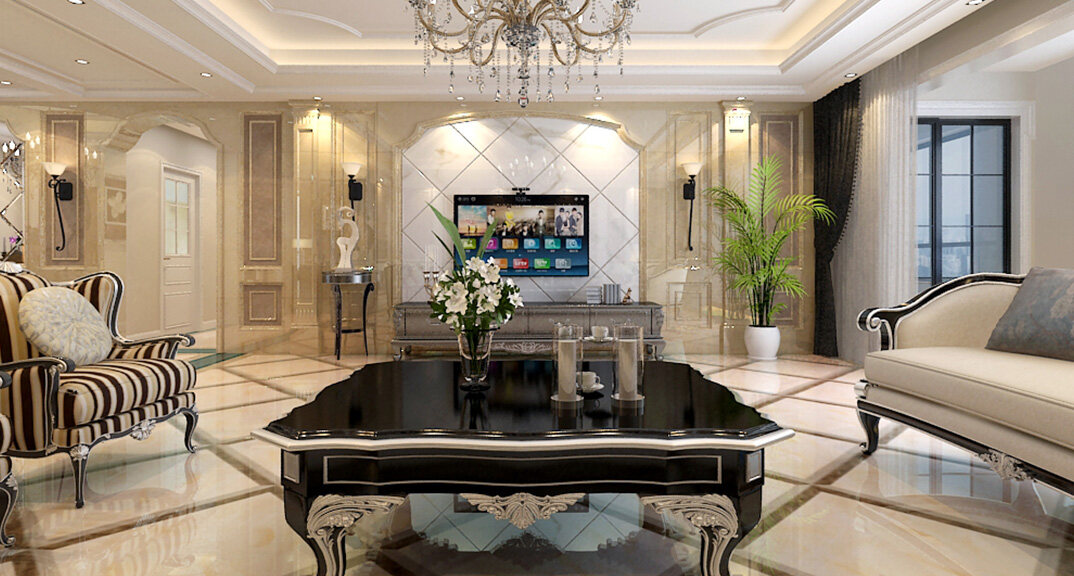 魯潤靜園234㎡四室兩廳客廳簡歐風格裝修案例效果圖