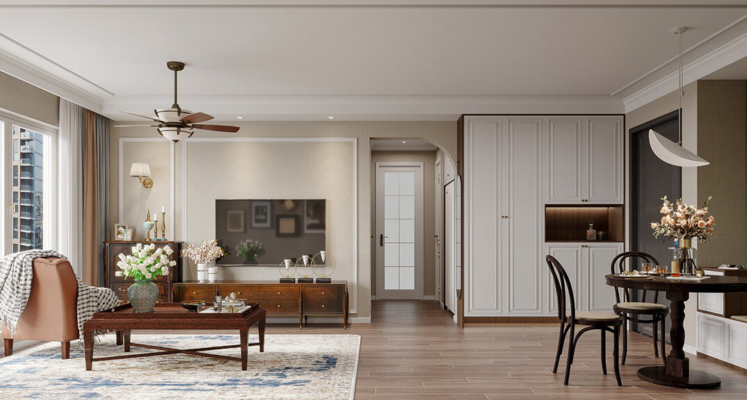 海洋地質(zhì)所120㎡三室兩廳美式風格裝修vr全景