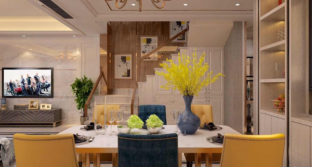 金秋泰和郡186㎡別墅客餐廳現(xiàn)代歐式風(fēng)格裝修案例效果圖