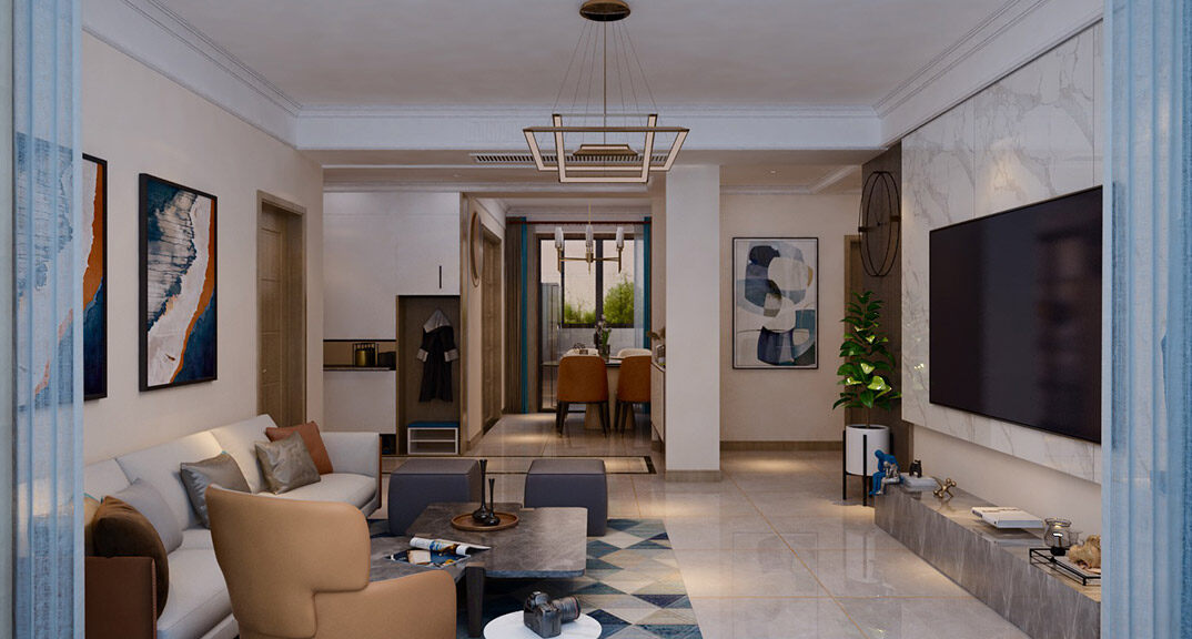 鑫江合院270㎡別墅客廳電視現(xiàn)代風(fēng)格裝修案例效果圖